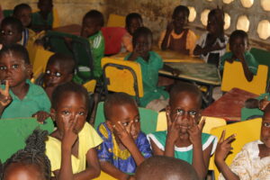 collecting essential school supplies to support children affected by Gbiniyiri conflict